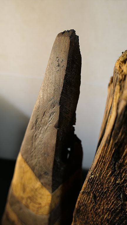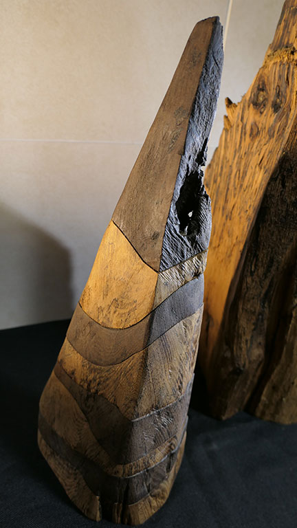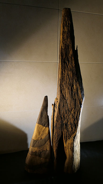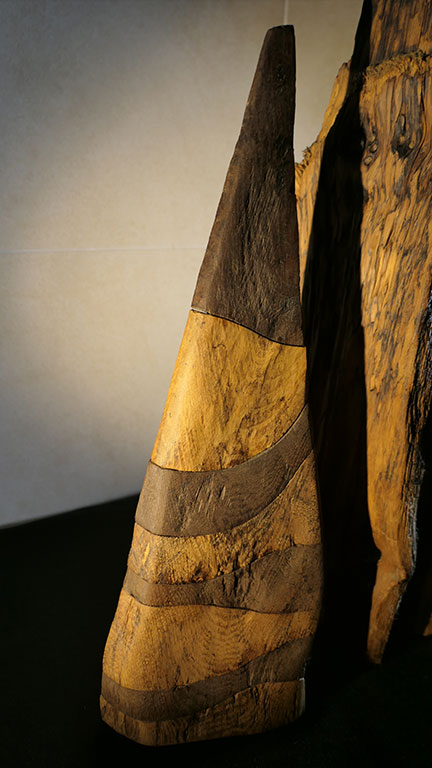 Mimes, deux silhouettes en acacia massif de 60 ans d'âge... Cette création est polie et façonnée à la main, certaines stries sont accentuées par une teinte naturelle.
